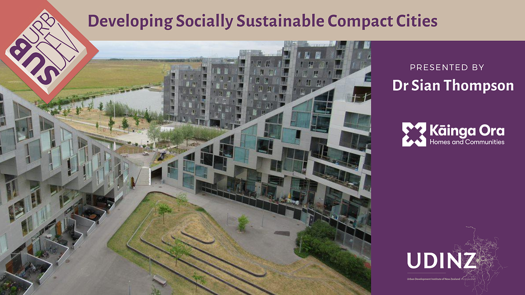 Dr Sian Thompson of Kāinga Ora presented her PhD work on neighbour relationships in large apartment buildings, and touch on housing affordability, the rationale for compact cities, and what built environment professionals can do to address barriers to social sustainability.